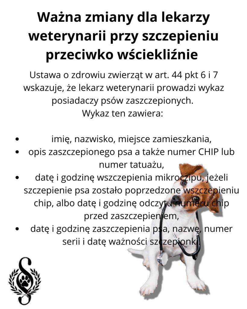 Nowość jaka została wprowadzona w ustawie to nakaz prowadzenia przez lekarza weterynarii „wykazu posiadaczy zaszczepionych przeciwko wściekliźnie” psów (art. 44 pkt 6).