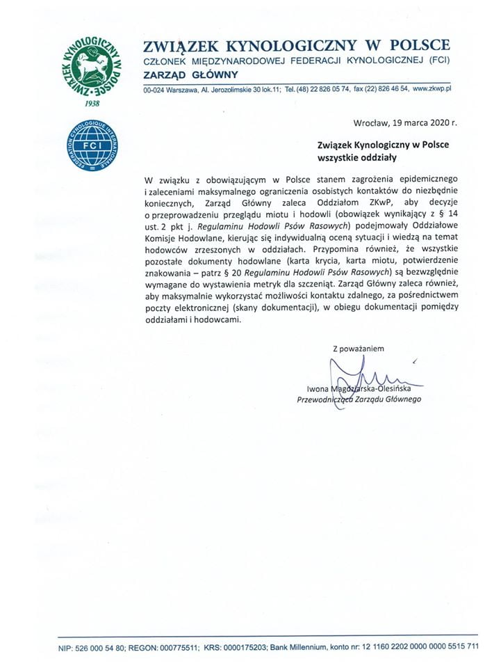 Oświadczenie Głównej Komisji Hodowlanej z dn. 19.03.2020 r.