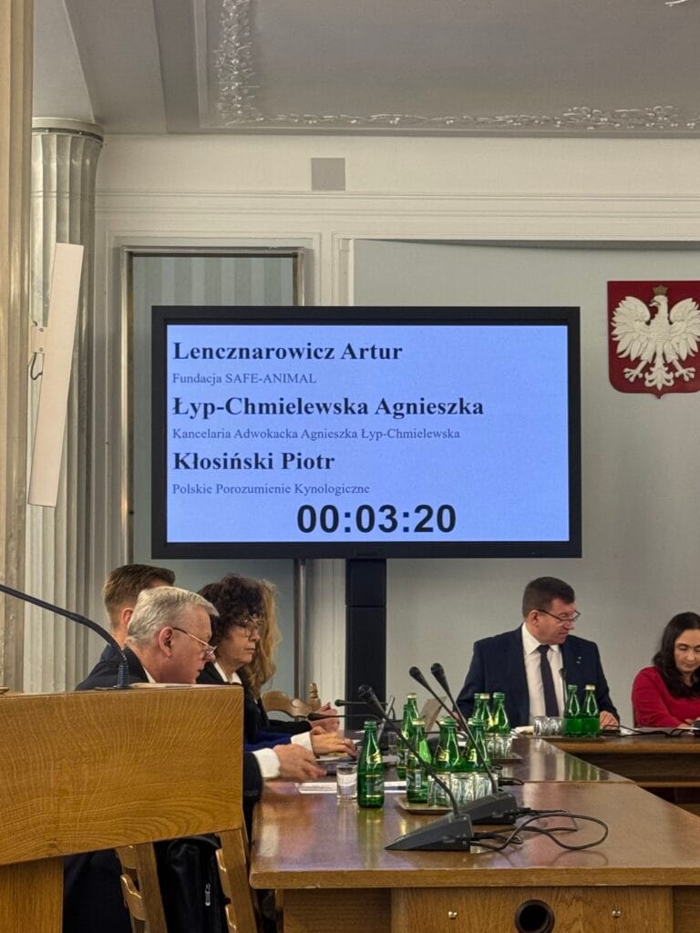W trakcie wysłuchania miałam również swoje wystąpienie, w którym odniosłam się do rozdziału 2b proponowanej ustawy, który miałaby za zadanie uregulować hodowlę psów i kotów w Polsce.
